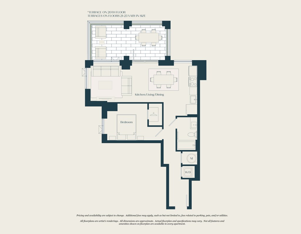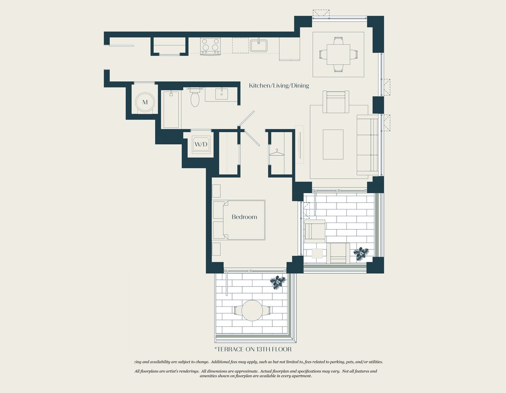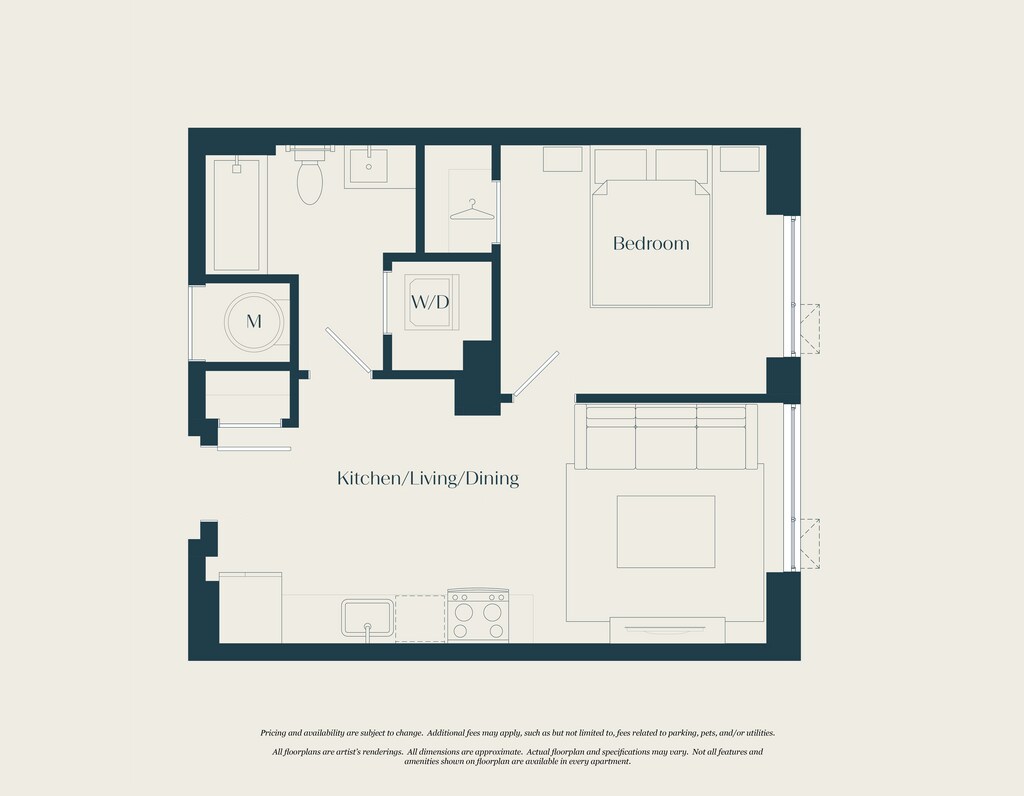 Modelo de apartamento: 0 Bed - 1 Bath | S03Llame para PreciosEstudio, 1 Baño, 592 sq ftNo DisponibleLos planos son representaciones artísticas. Todas las dimensiones son aproximadas. El producto y las especificaciones reales pueden variar en tamaño o detalle. No todas las características están disponibles en cada vivienda en alquiler. Por favor, consulta con un representante para obtener más detalles.