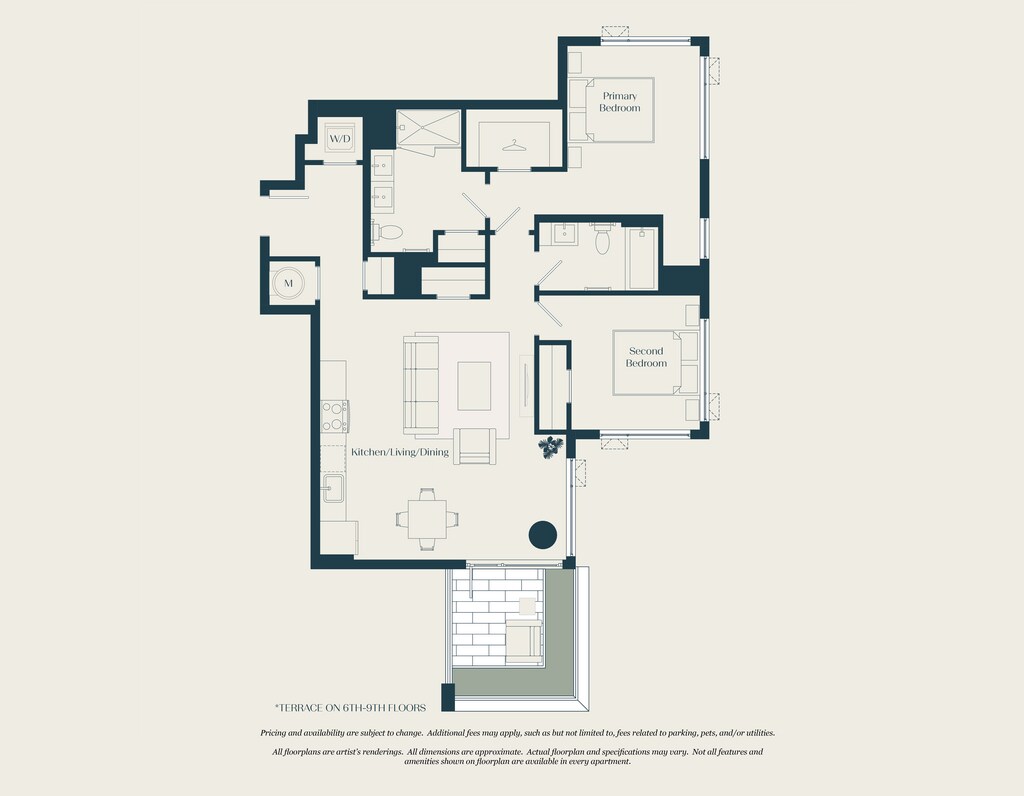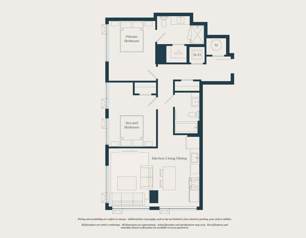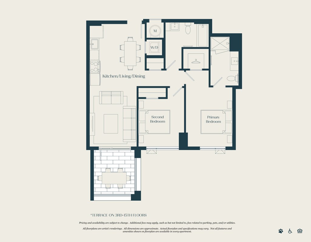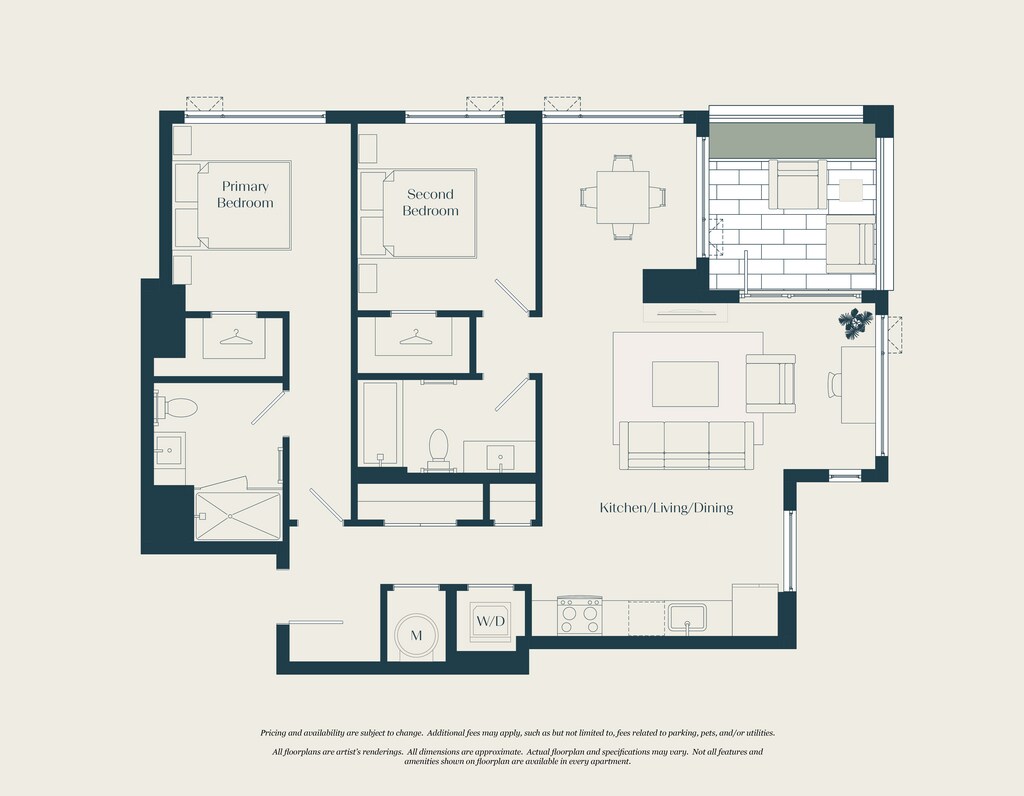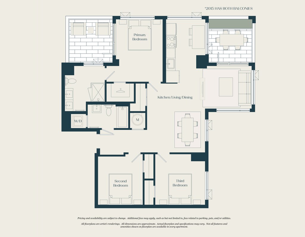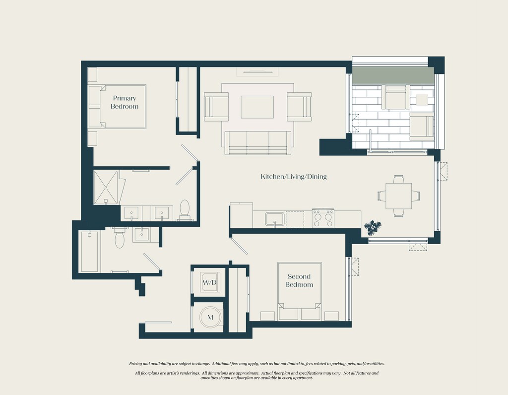 Modelo de apartamento: 1 Bed - 1 Bath | AJ5Desde $2,5601 Dormitorio, 1 Baño, 635 sq ftDisponible Ahora![]()