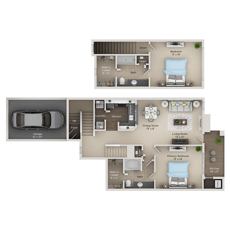 1 Dormitorio, 1 Baño, 975 pies²Disponible AhoraGalería del Modelo