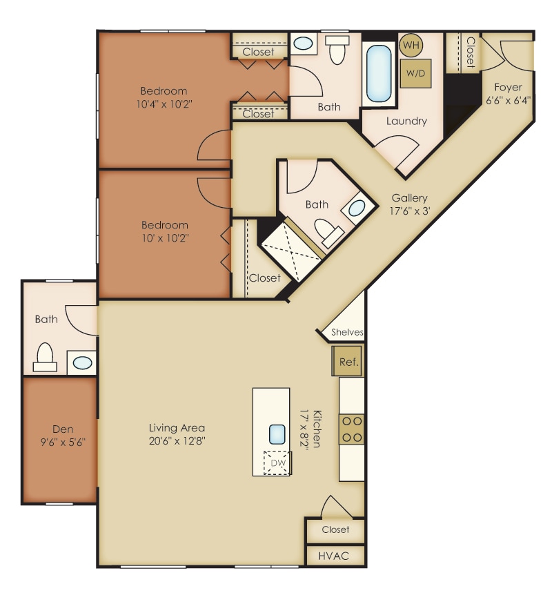 Modelo de apartamento: A3Llame para Precios1 Dormitorio, 1 Baño, 725 sq ftNo DisponibleLos planos son representaciones artísticas. Todas las dimensiones son aproximadas. El producto y las especificaciones reales pueden variar en tamaño o detalle. No todas las características están disponibles en cada vivienda en alquiler. Por favor, consulta con un representante para obtener más detalles.