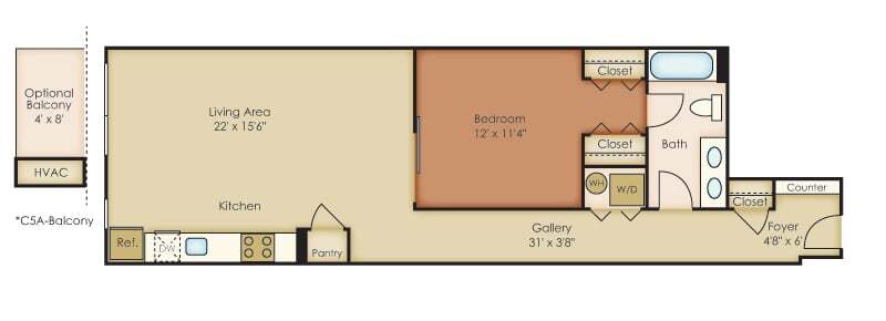C2 - Plano Unidad de apartamento: 717Modelo de apartamento: C2$2,1741 Dormitorio, 1 Baño, 930 sq ftDisponible AhoraPlano: C5