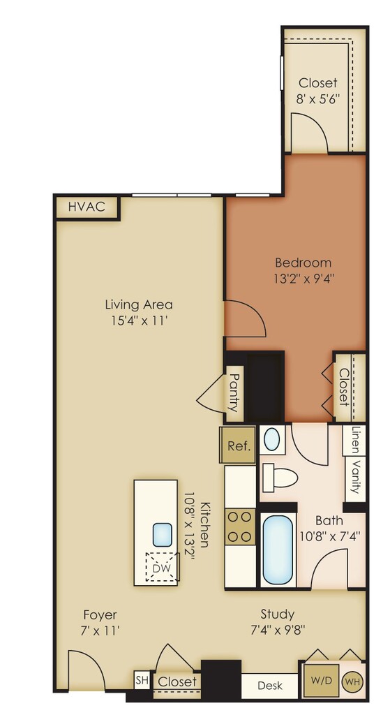 Modelo de apartamento: A5Llame para Precios1 Dormitorio, 1 Baño, 793 sq ftNo DisponibleLos planos son representaciones artísticas. Todas las dimensiones son aproximadas. El producto y las especificaciones reales pueden variar en tamaño o detalle. No todas las características están disponibles en cada vivienda en alquiler. Por favor, consulta con un representante para obtener más detalles.