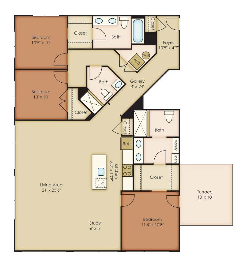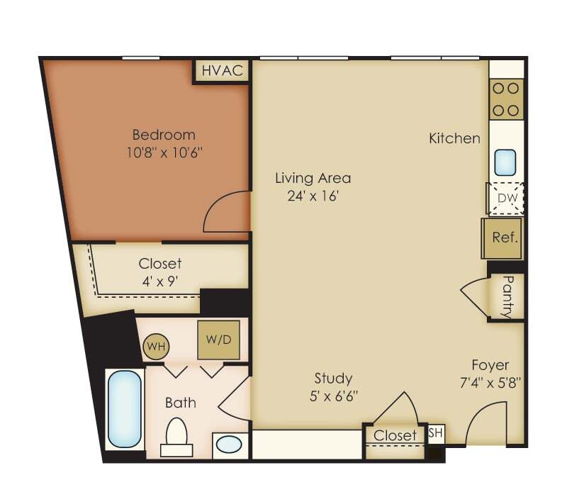 1 Dormitorio, 1 Baño, 879 pies²Precio Mensual TotalDisponible Jul 1Precio Mensual Total