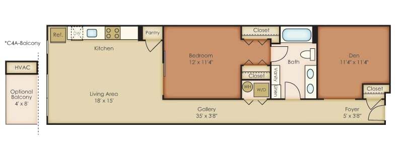 C4 - Plano Unidad de apartamento: 631Modelo de apartamento: C4$2,7141 Dormitorio, 1 Baño, 879 sq ftDisponible July 1, 2026Plano: A1