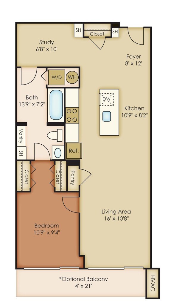 1 Dormitorio, 1 Baño, 788 pies²Precio Mensual TotalDisponible AhoraPrecio Mensual Total