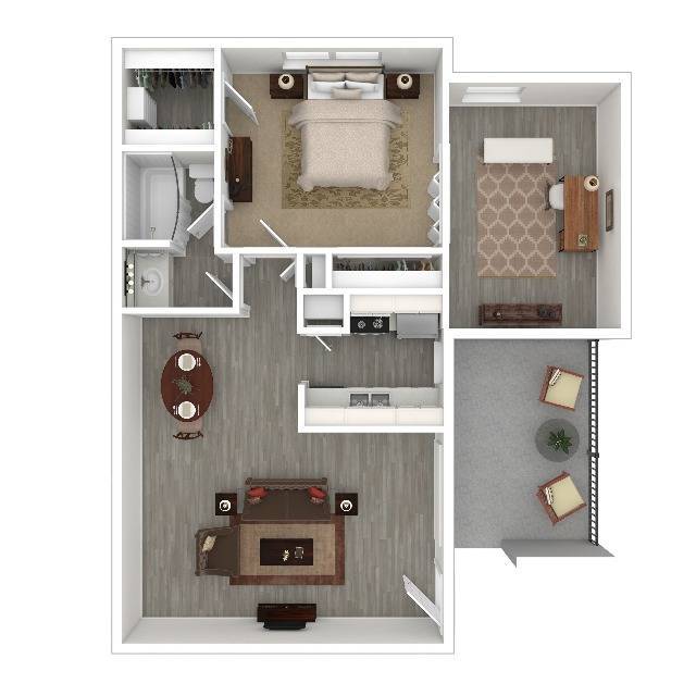 Modelo de apartamento: A1RDesde $8321 Dormitorio, 1 Baño, 700 sq ftDisponible Ahora![]()