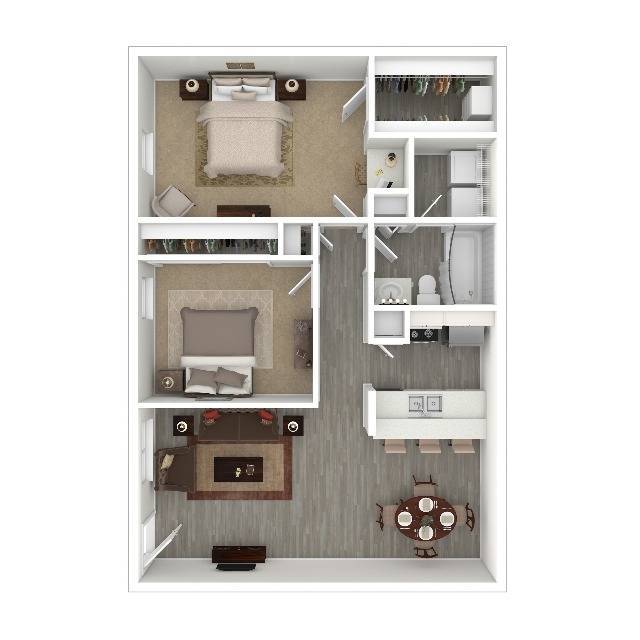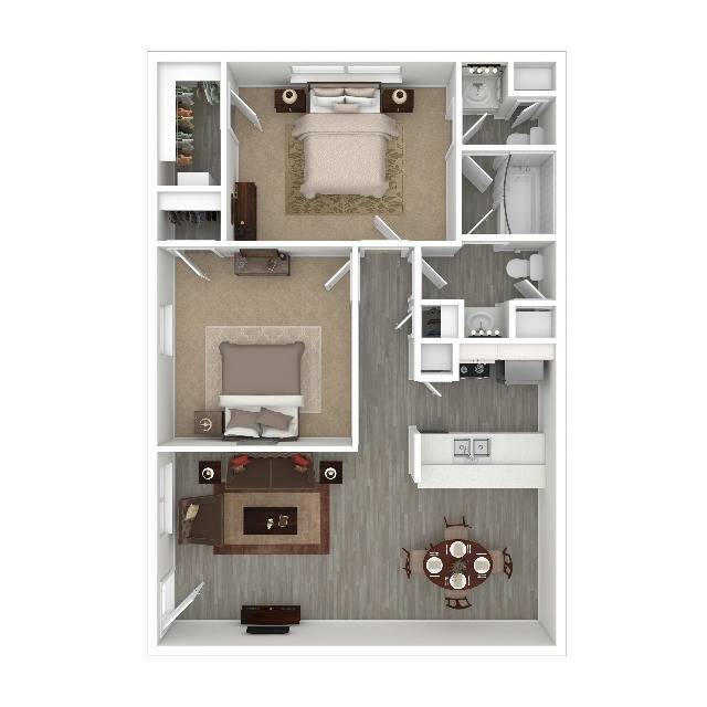 Modelo de apartamento: A1Desde $8641 Dormitorio, 1 Baño, 700 sq ftDisponible Ahora![]()