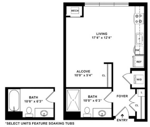 Estudio, 1 Baño, 635 pies²Precio Mensual TotalDisponible AhoraEl más grandeEsta opción tiene las unidades más grandes para este modeloGalería del Modelo