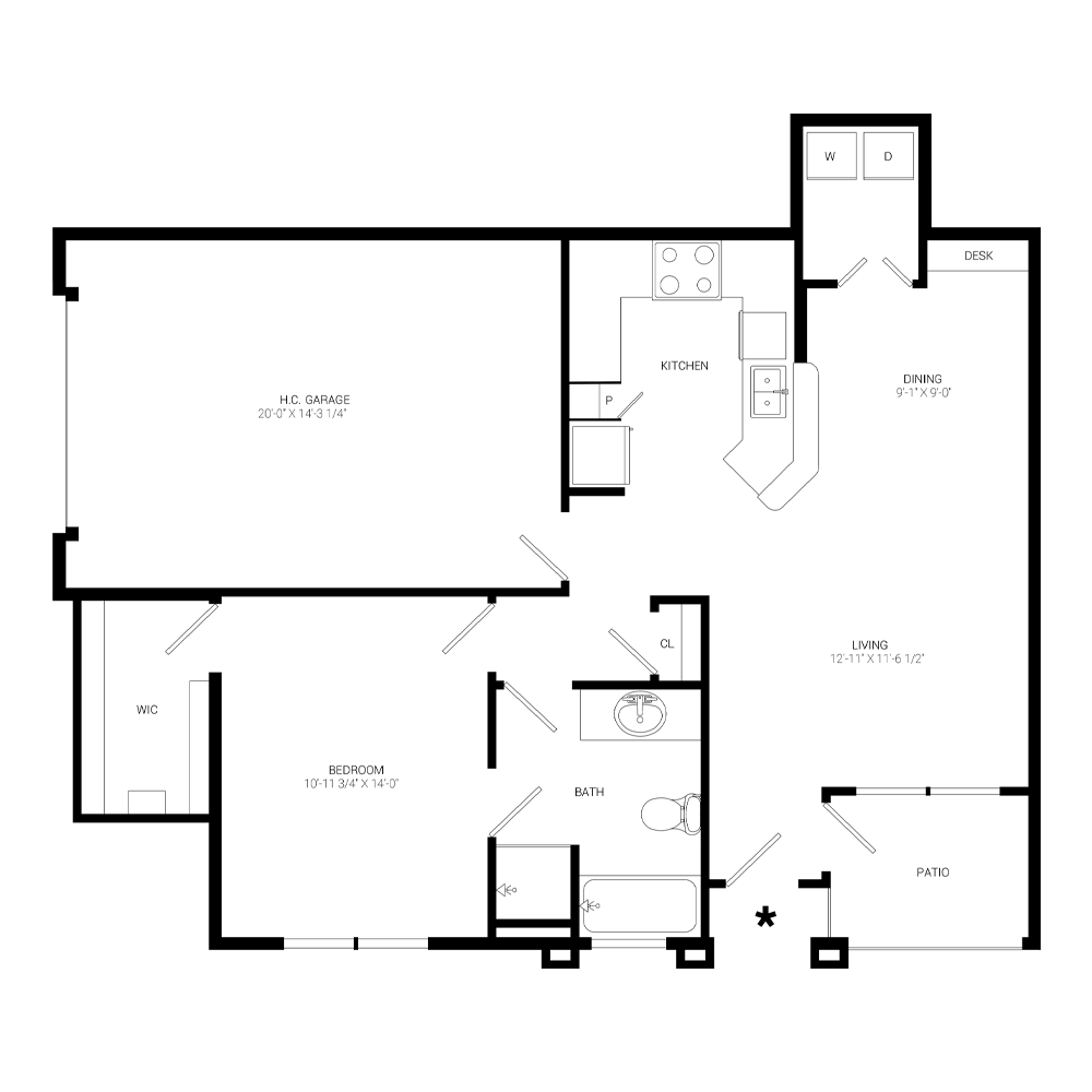 Modelo de apartamento: Adair1 Dormitorio, 1 Baño, 729 sq ftDisponible Ahora![]()