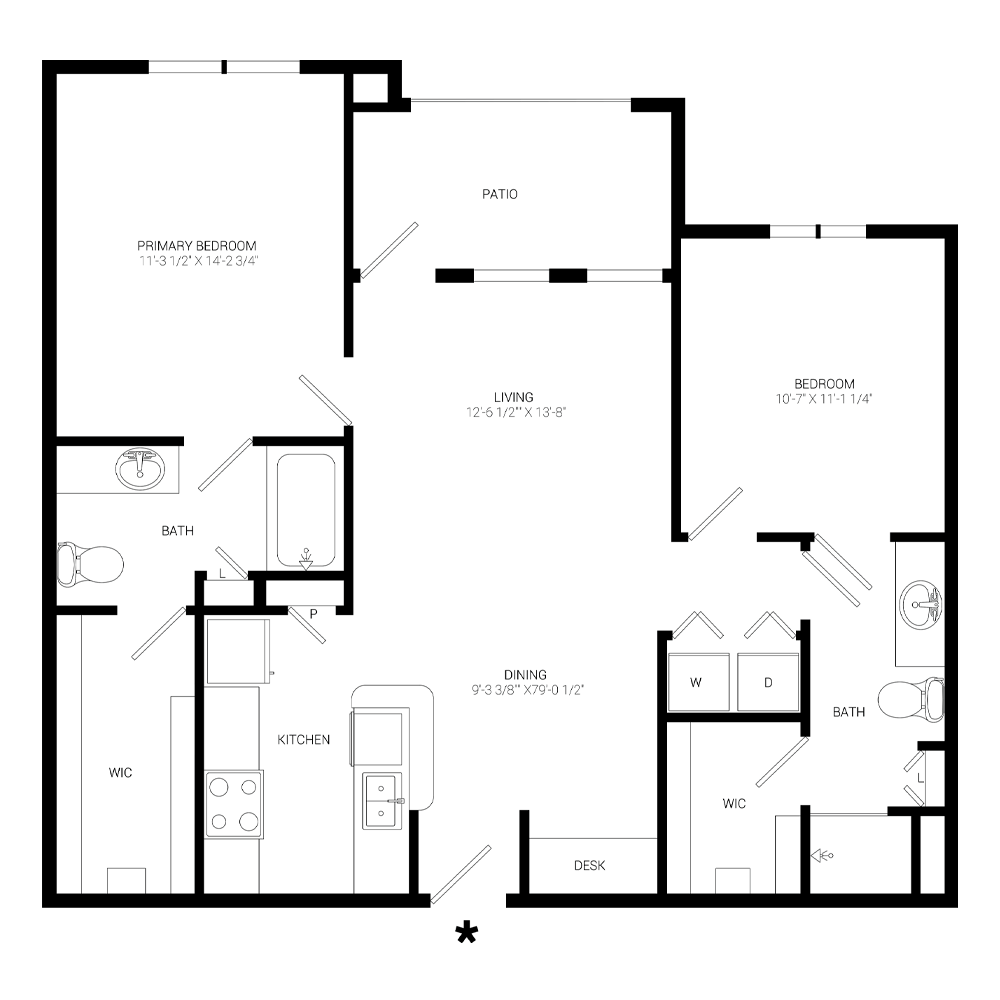 Modelo de apartamento: Chelsea2 Dormitorios, 2 Baños, 1075 sq ftDisponible Ahora![]()