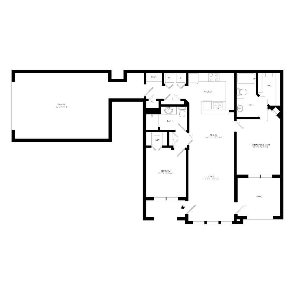 Sierra - Plano 2 Unidad de apartamento: 0706Modelo de apartamento: Sierra1 Dormitorio, 1 Baño, 791 sq ftDisponible Ahora2 Dormitorios