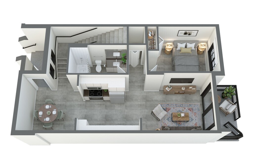 1 Dormitorio, 1 Baño, 592 pies²Disponible AhoraGalería del Modelo