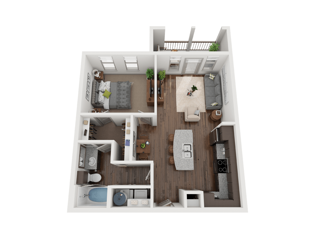 1 Dormitorio, 1 Baño, 850 pies²Disponible AhoraEl más grandeEsta opción tiene las unidades más grandes para este modeloGalería del Modelo