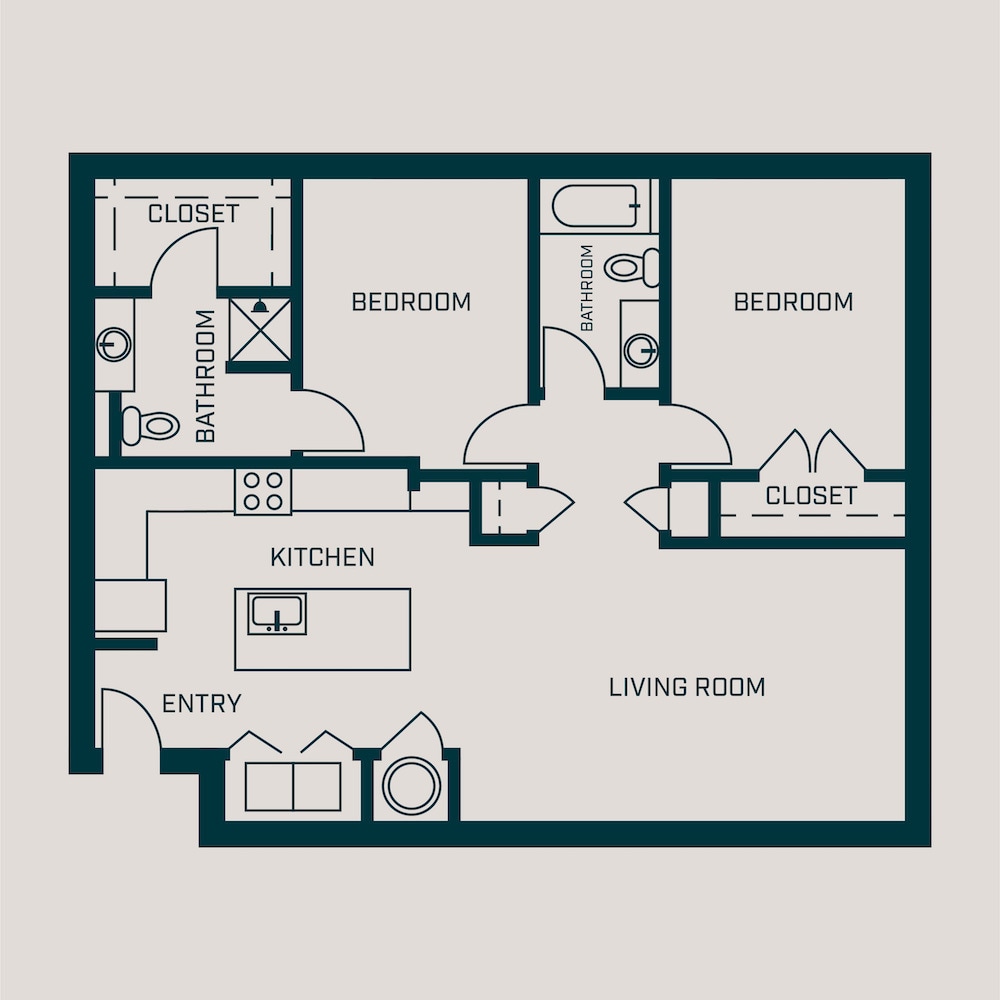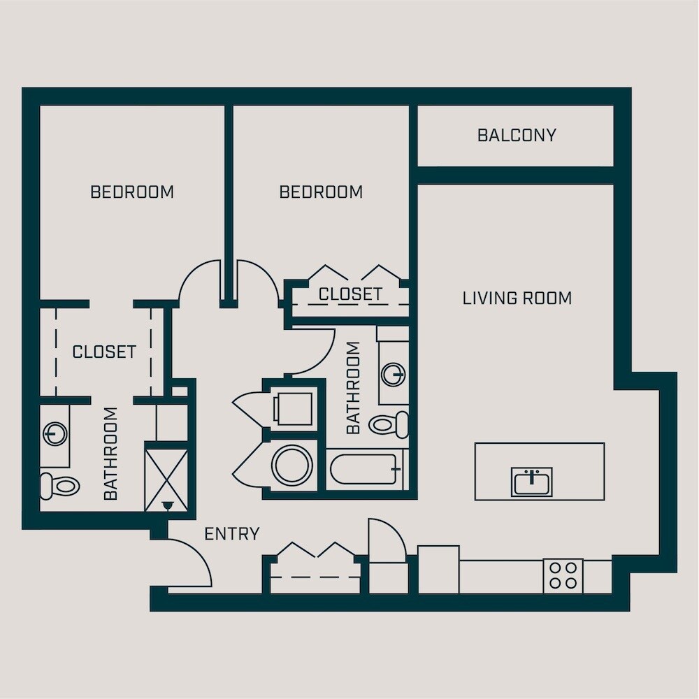 1 Dormitorio, 2 Baños, 962 pies²Disponible AhoraEl más grandeEsta opción tiene las unidades más grandes para este modeloGalería del Modelo