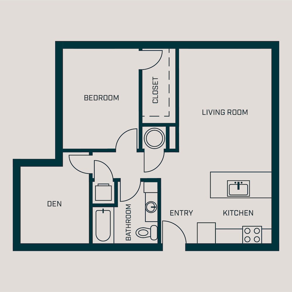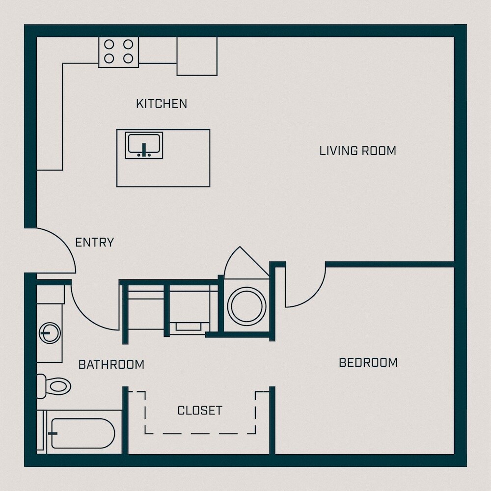 1 Dormitorio, 1 Baño, 754 pies²Disponible AhoraGalería del Modelo