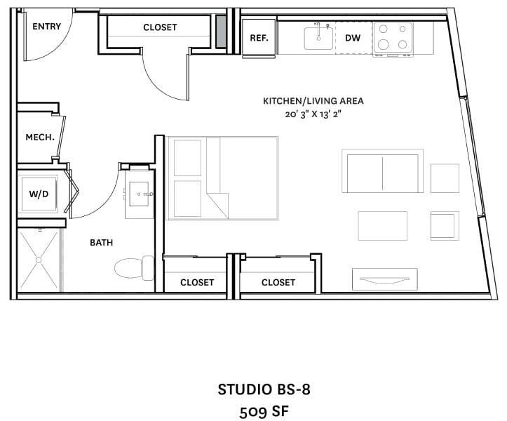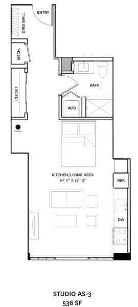 BS-3 - Plano 1 Unidad de apartamento: 34-2413Modelo de apartamento: BS-3$2,490Estudio, 1 Baño, 535 sq ftDisponible AhoraBS-4