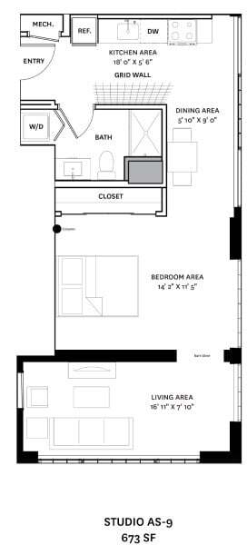 Modelo de apartamento: AS-5Llame para PreciosEstudio, 1 Baño, 422 sq ftNo Disponible![]()