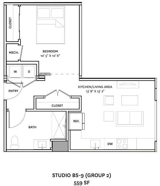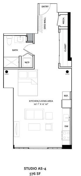Modelo de apartamento: BS-4Desde $2,740Estudio, 1 Baño, 557-594 sq ftDisponible Ahora![]()