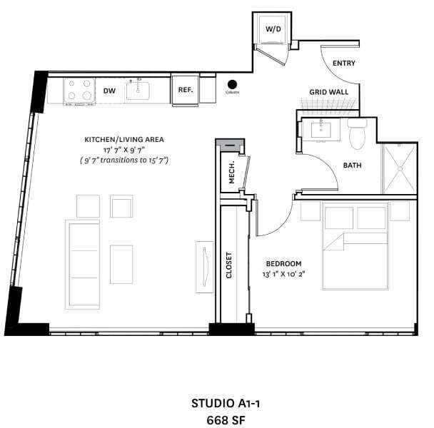 Estudio, 1 Baño, 435 pies²Galería del Modelo
