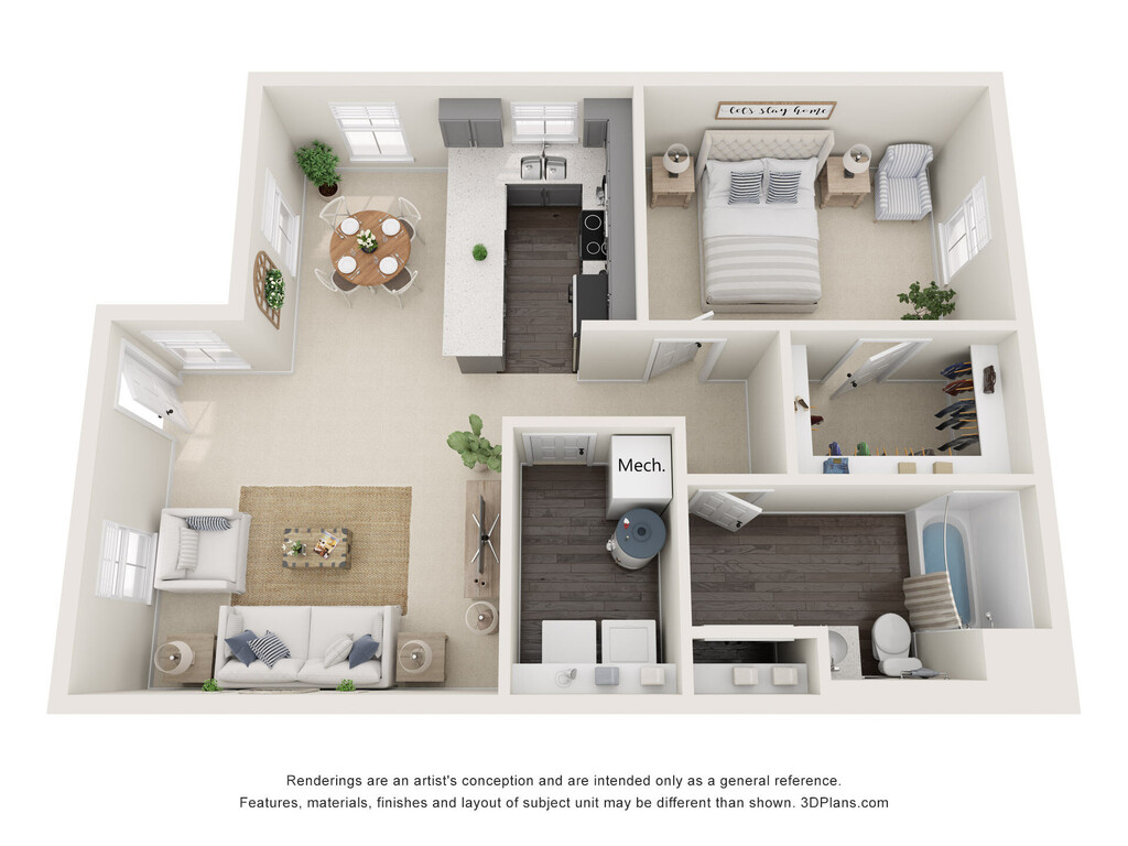 1 Dormitorio, 1 Baño, 728 pies²Galería del Modelo