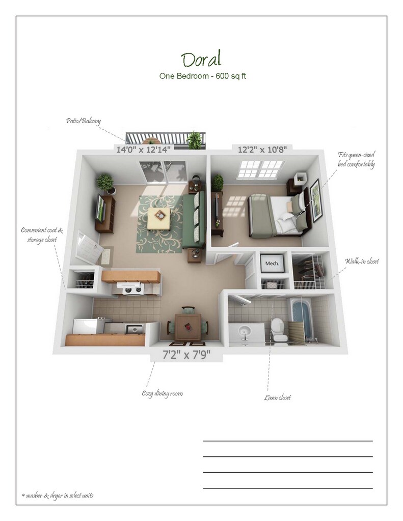 Modelo de apartamento: DoralDesde $1,7501 Dormitorio, 1 Baño, 600 sq ftDisponible AhoraPlanosFotos![]()