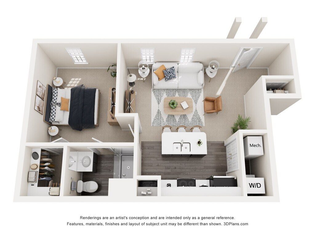 1 Dormitorio, 1 Baño, 629-829 pies²Disponible AhoraGalería del Modelo