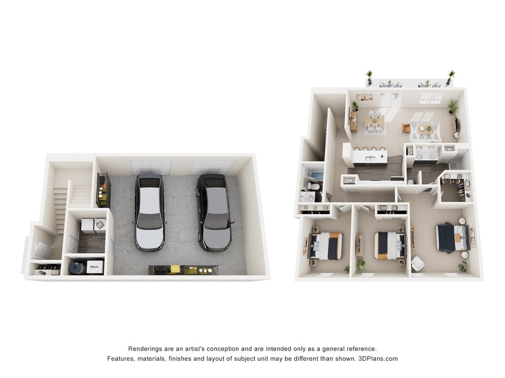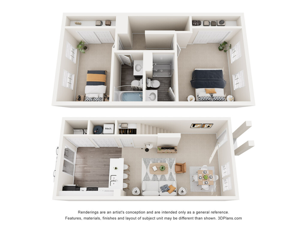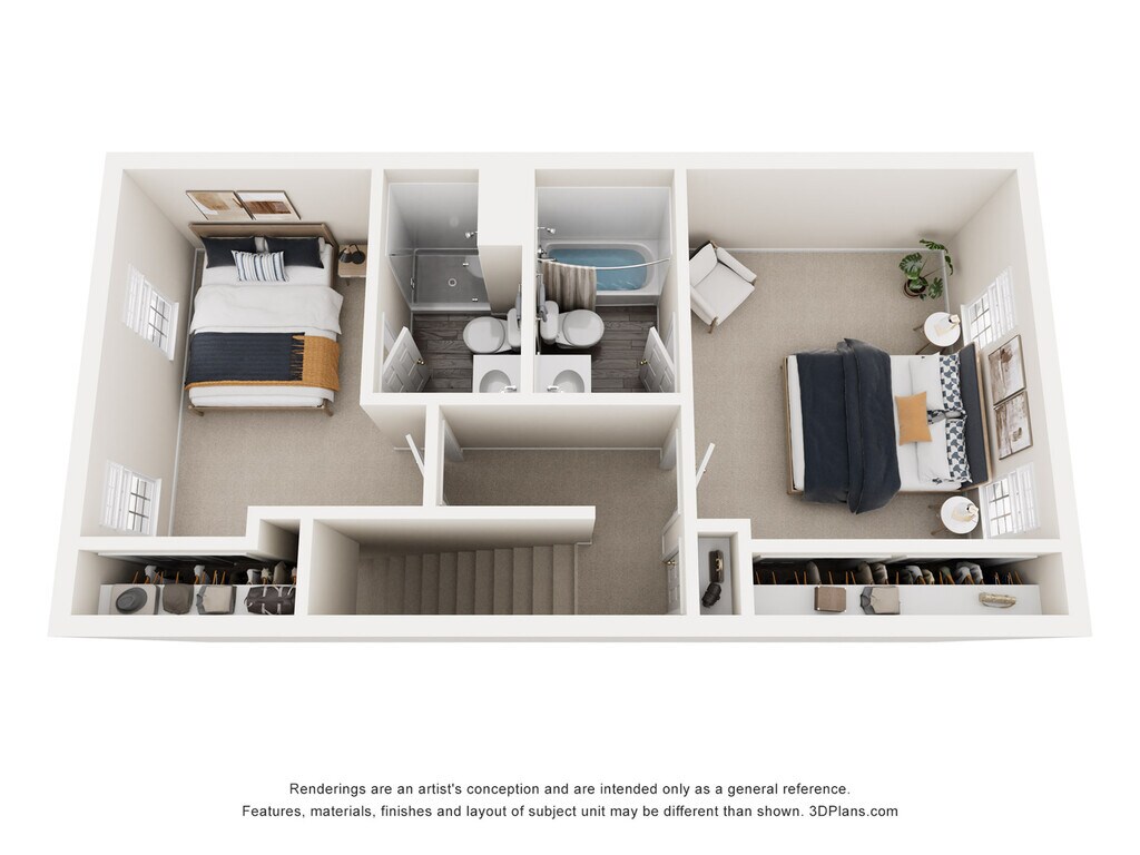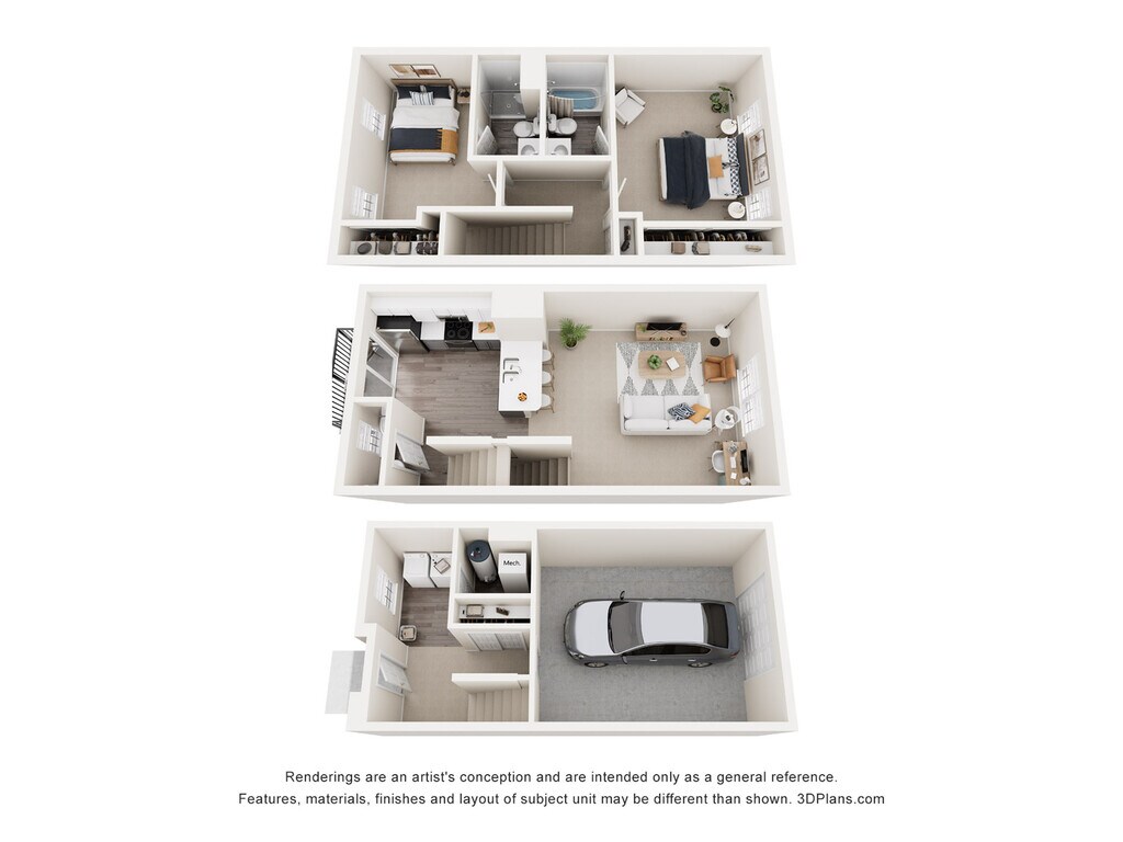 2 Dormitorios, 2.5 Baños, 1024-1088 pies²Disponible AhoraGalería del Modelo