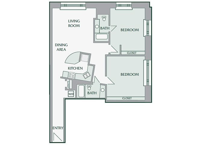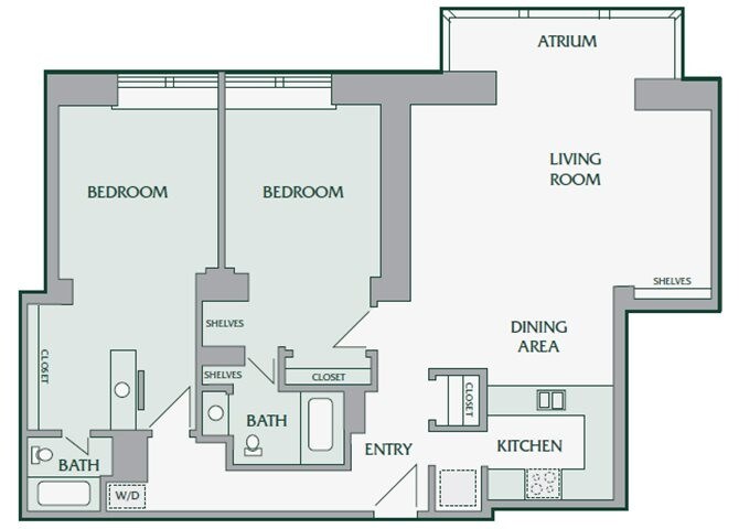 Modelo de apartamento: 1 Bedroom, 1 Bathroom - 720 SFDesde $1,1951 Dormitorio, 1 Baño, 720 sq ftDisponible Ahora![]()