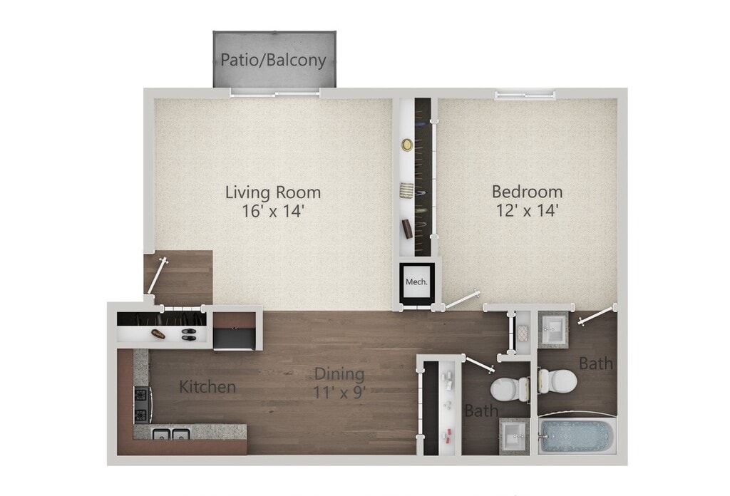 1 Dormitorio, 1.5 Baños, 800 pies²Disponible AhoraGalería del Modelo