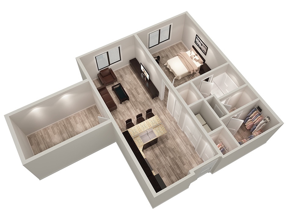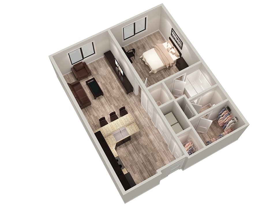 1 Dormitorio, 1 Baño, 710 pies²Disponible AhoraGalería del Modelo