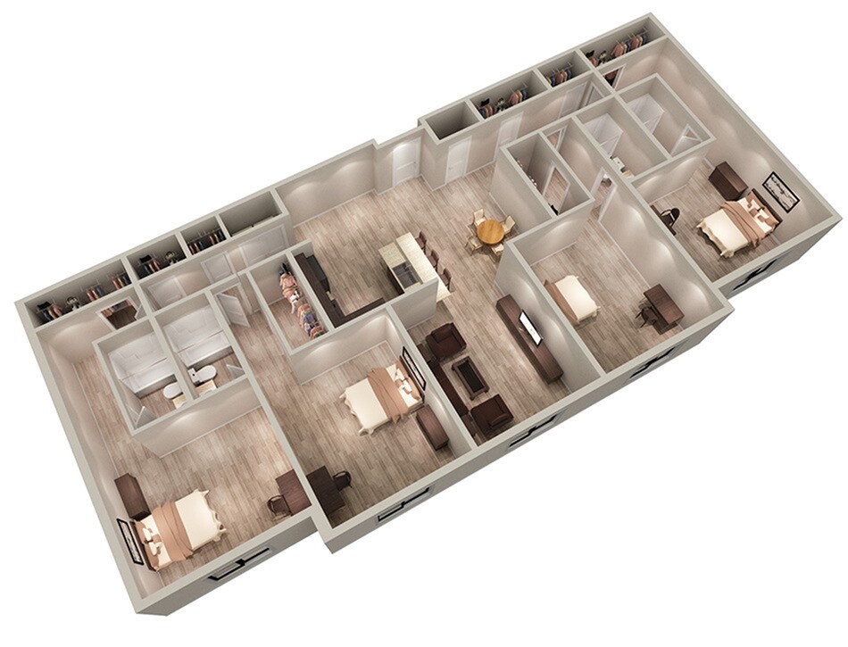 Modelo de apartamento: D2 - 4x4$9004 Dormitorios, 4 Baños, 1760 sq ftDisponible Ahora![]()