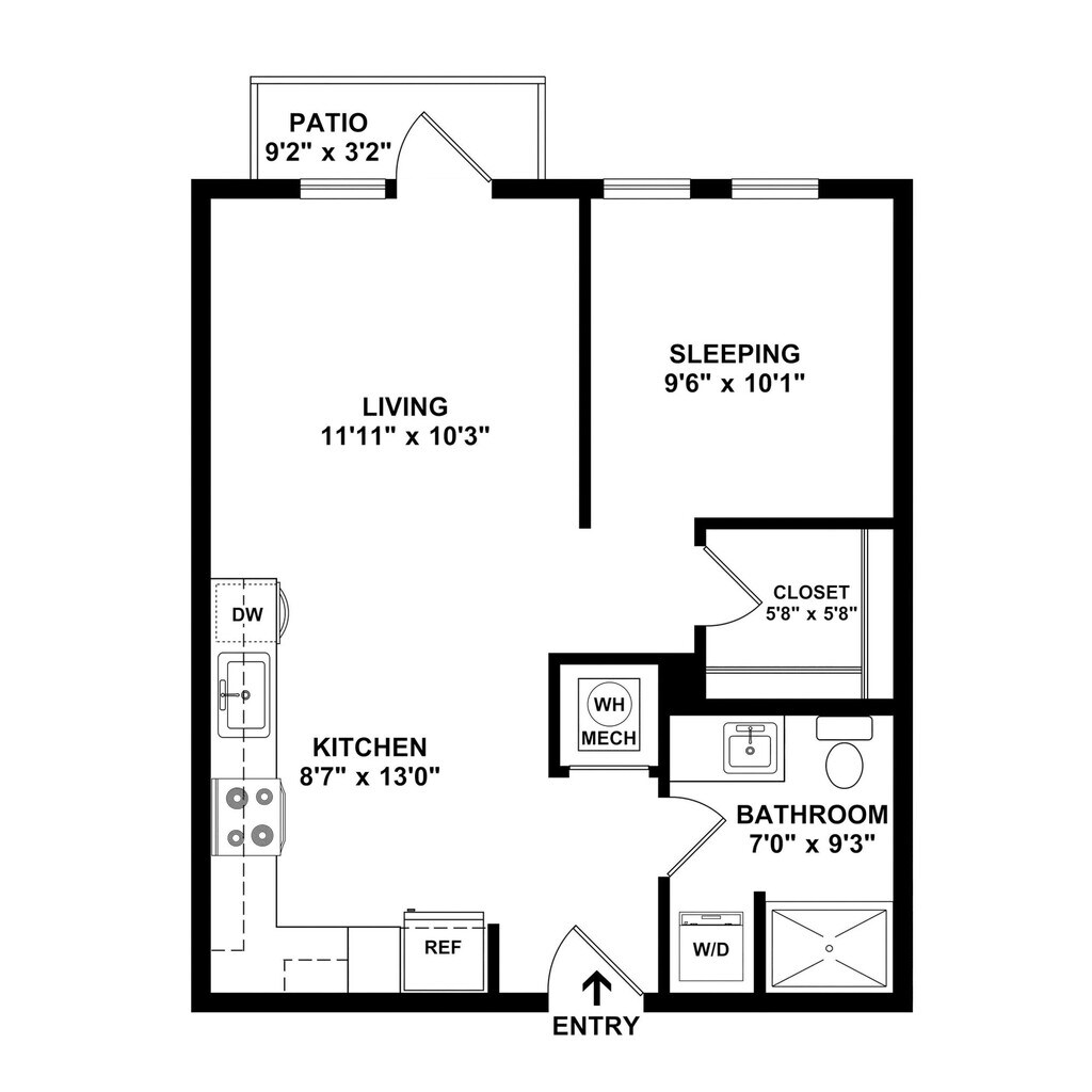 Estudio, 1 Baño, 585 pies²Disponible AhoraGalería del Modelo