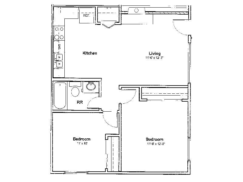 2 Dormitorios, 1 Baño, 750 pies²Galería del Modelo