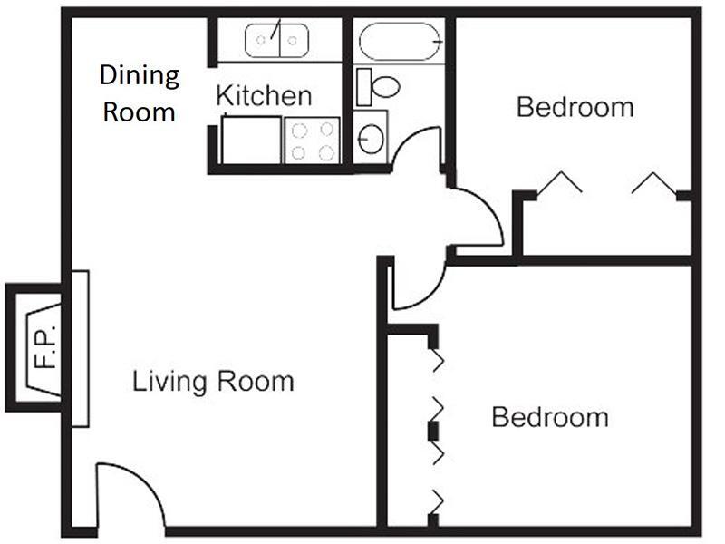 Modelo de apartamento: 2x1F2 Dormitorios, 1 Baño, 750 sq ftDisponible Ahora![]()