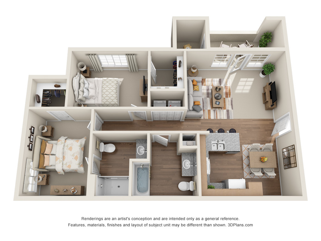 2 Dormitorios, 2 Baños, 988 pies²Disponible AhoraGalería del Modelo