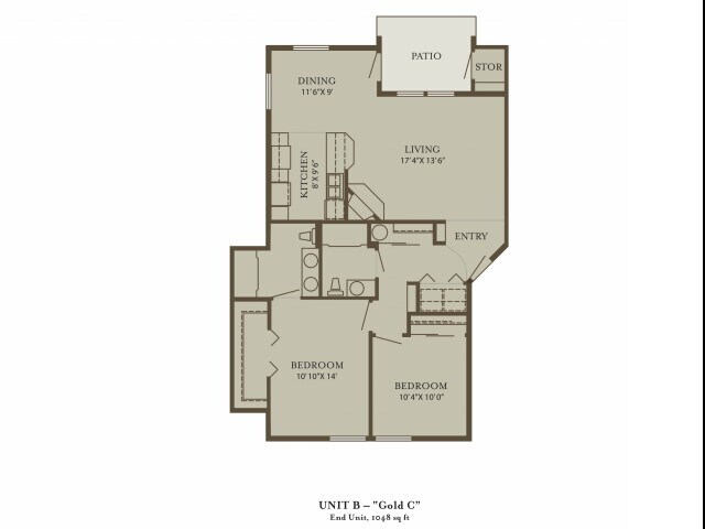 Silver - Plano 3 Unidad de apartamento: H082Modelo de apartamento: Silver2 Dormitorios, 1 Baño, 1026 sq ftDisponible Ahora![]()