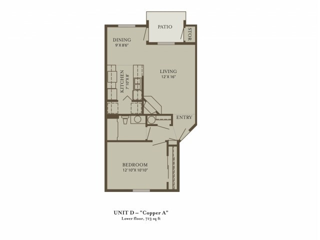 Copper - Plano 3 Unidad de apartamento: J098Modelo de apartamento: Copper1 Dormitorio, 1 Baño, 713 sq ftDisponible Ahora![]()