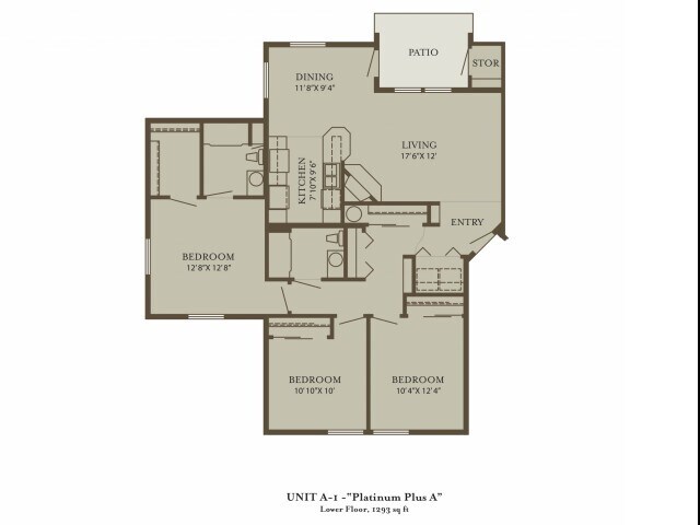 Silver - Plano 3 Unidad de apartamento: B016Modelo de apartamento: Silver2 Dormitorios, 1 Baño, 1026 sq ftDisponible Ahora![]()