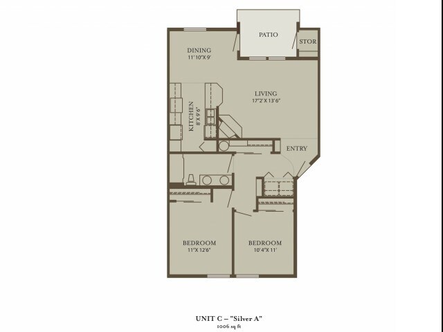 Modelo de apartamento: Silver2 Dormitorios, 1 Baño, 1006 sq ftDisponible Ahora![]()