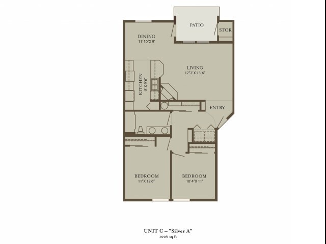 Modelo de apartamento: Silver2 Dormitorios, 1 Baño, 1006 sq ftDisponible AhoraLos planos son representaciones artísticas. Todas las dimensiones son aproximadas. El producto y las especificaciones reales pueden variar en tamaño o detalle. No todas las características están disponibles en cada vivienda en alquiler. Por favor, consulta con un representante para obtener más detalles.