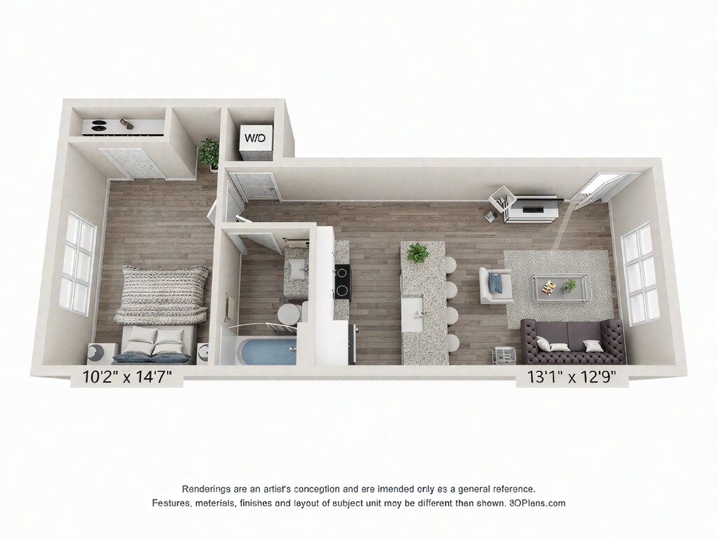 1 Dormitorio, 1 Baño, 675 pies²Disponible AhoraGalería del Modelo