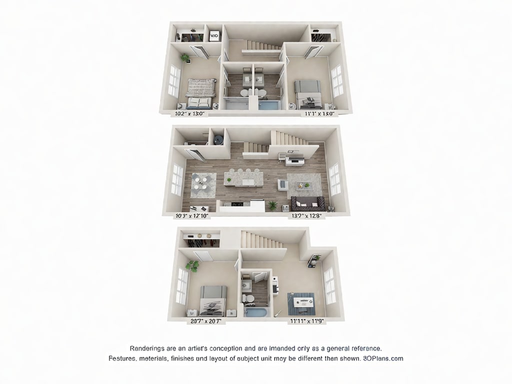 3 Dormitorios, 3.5 Baños, 1990 pies²Galería del Modelo