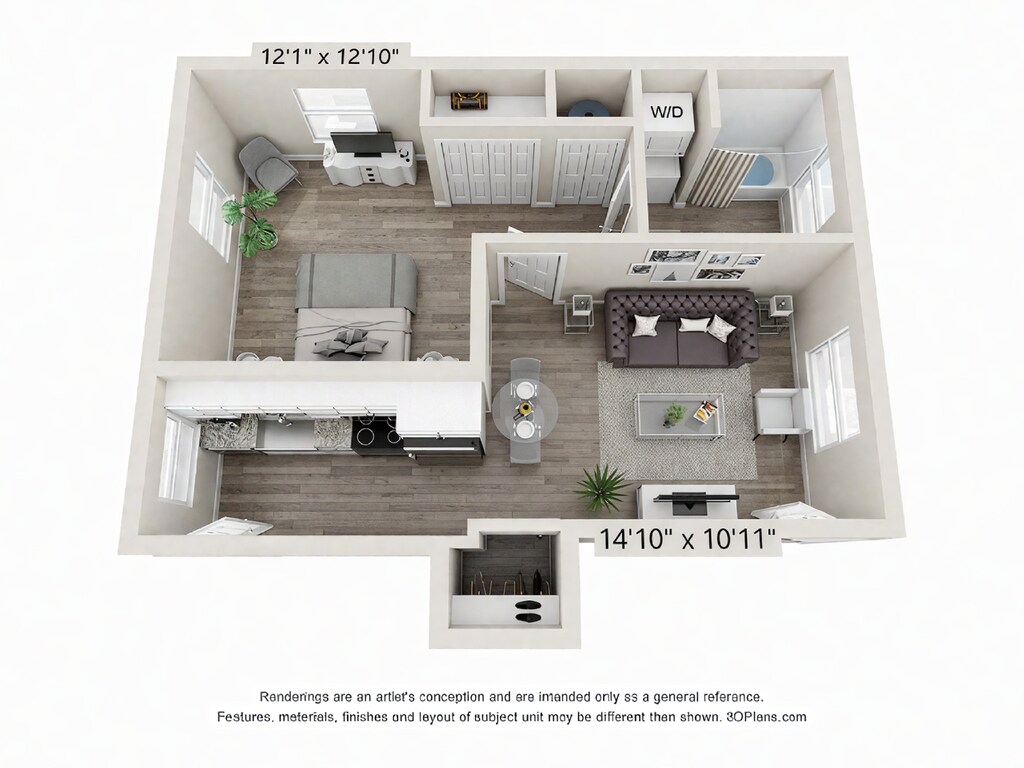 1 Dormitorio, 1 Baño, 602 pies²Disponible AhoraGalería del Modelo