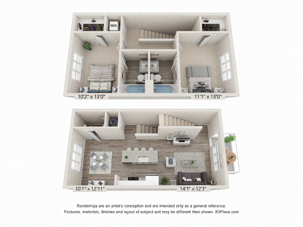 2 Dormitorios, 2.5 Baños, 1063 pies²Disponible Oct 7Galería del Modelo