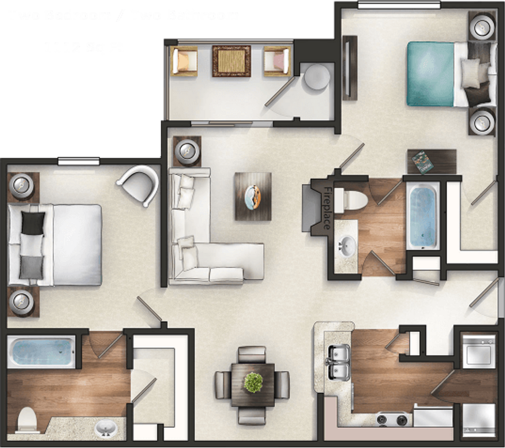 2 Dormitorios, 2 Baños, 1112 pies²Disponible AhoraGalería del Modelo