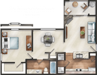 1 Dormitorio, 1 Baño, 850 pies²Disponible AhoraGalería del Modelo