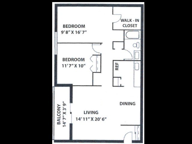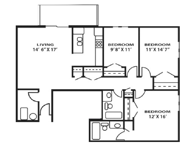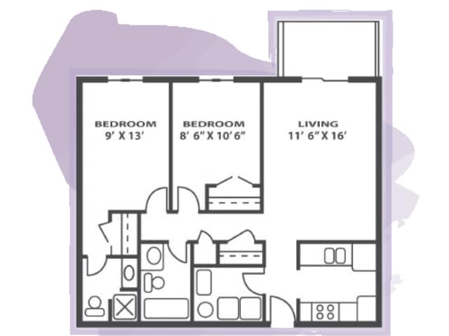 Modelo de apartamento: B2A$1,9561 Dormitorio, 1 Baño, 540 sq ftDisponible August 14, 2026![]()