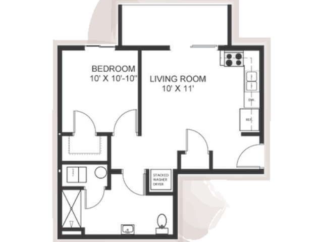 1 Dormitorio, 1 Baño, 540 pies²Precio Mensual TotalDisponible August 14, 2026Galería del Modelo