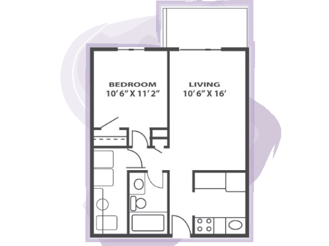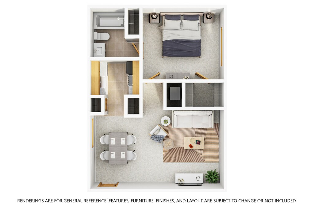 1 Dormitorio, 1 Baño, 670 pies²Precio Mensual TotalDisponible August 14, 2026Galería del Modelo
