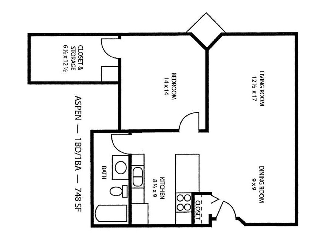 Modelo de apartamento: Aspen Vintage 1st Floor$1,2611 Dormitorio, 1 Baño, 535 sq ftDisponible March 9, 2026PlanosFotos![]()